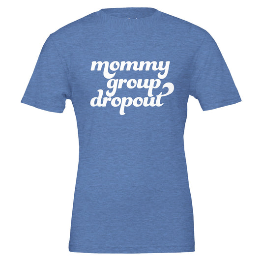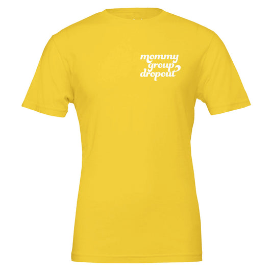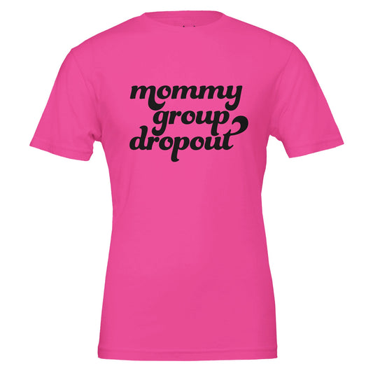 mommy group dropout tee. pocket tee. white text.