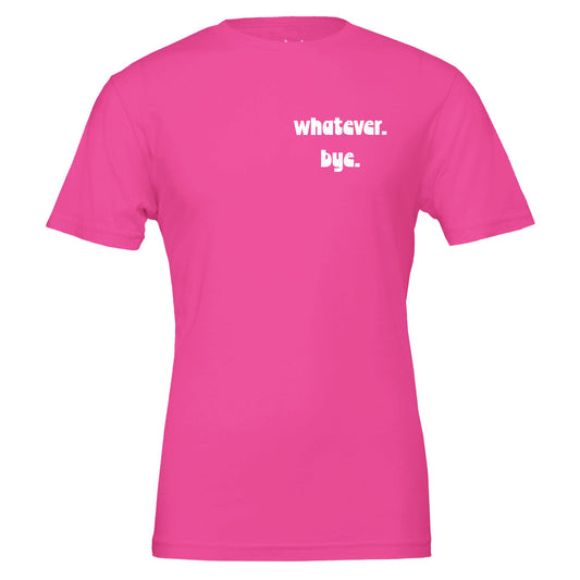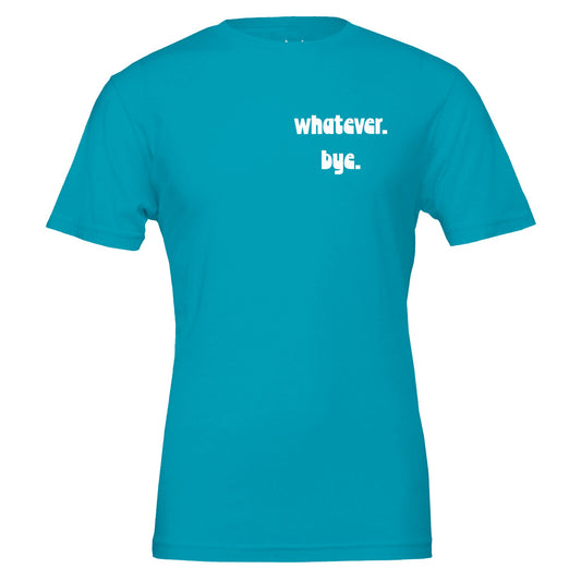 whatever. bye. tee. left chest logo. white text.